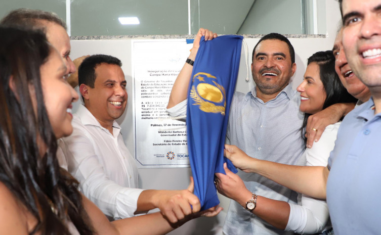 O governador do Tocantins, Wanderlei Barbosa, acompanhado da primeira-dama e secretária Extraordinária de Participações Sociais, Karynne Sotero; e do secretário de Estado da Educação, Fábio Vaz, inaugurou nesta segunda-feira, 17, a Escola Estadual Maria Ribeiro de Oliveira, localizada no distrito de Buritirana, em Palmas. A obra, que integra o Programa de Fortalecimento da Educação (Profe), foi autorizada pelo governador em novembro de 2022 e contou com investimento de R$ 7.234.842,20. Aproveitando o momento, o chefe do Executivo estadual prestigiou a inauguração das obras de revitalização da Praça Natal Camilo da Silva, também em Buritirana.