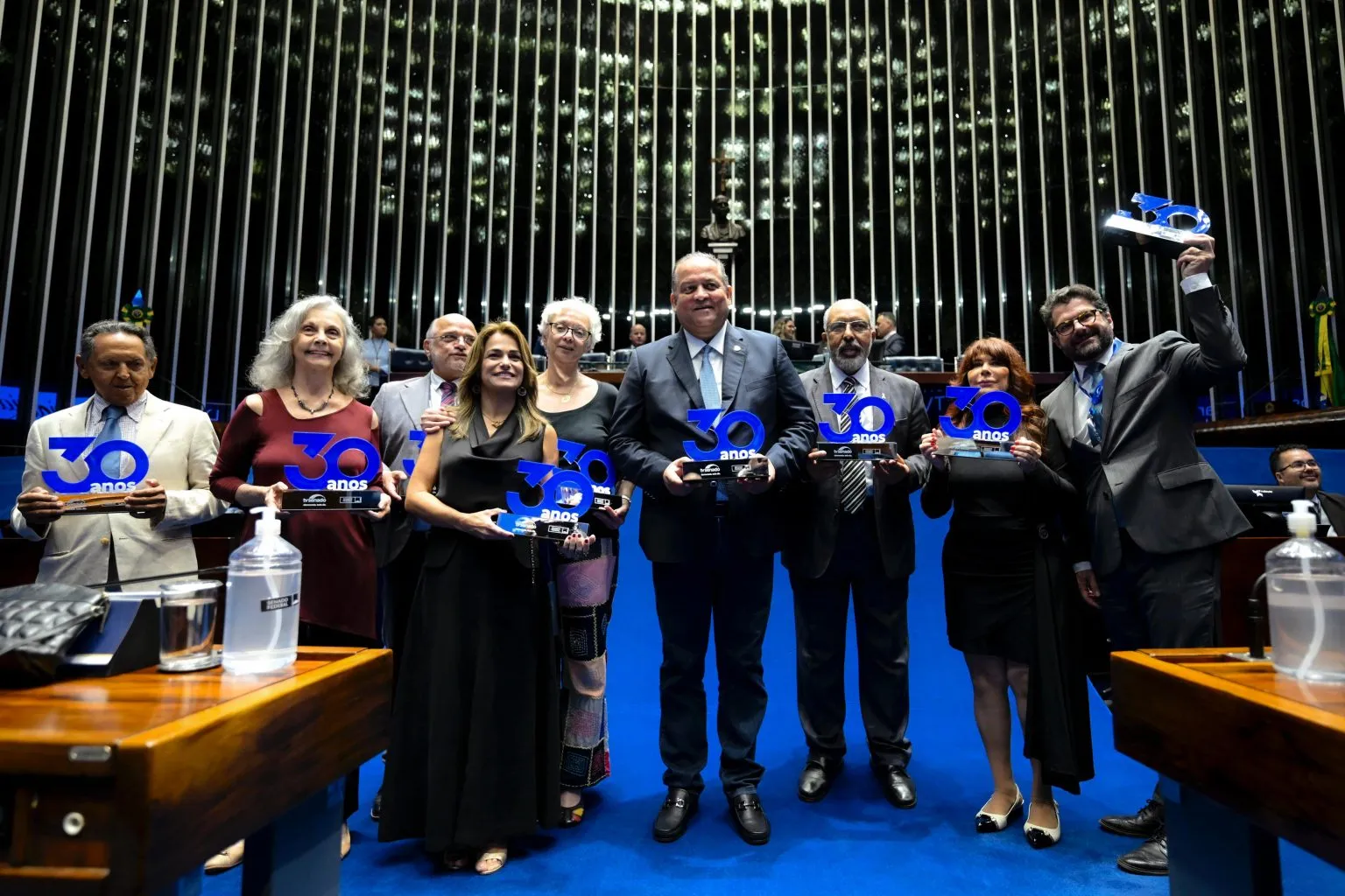 A homenagem reuniu senadores, servidores e profissionais que ajudaram a construir a trajetória da emissora legislativa ao longo de três décadas.