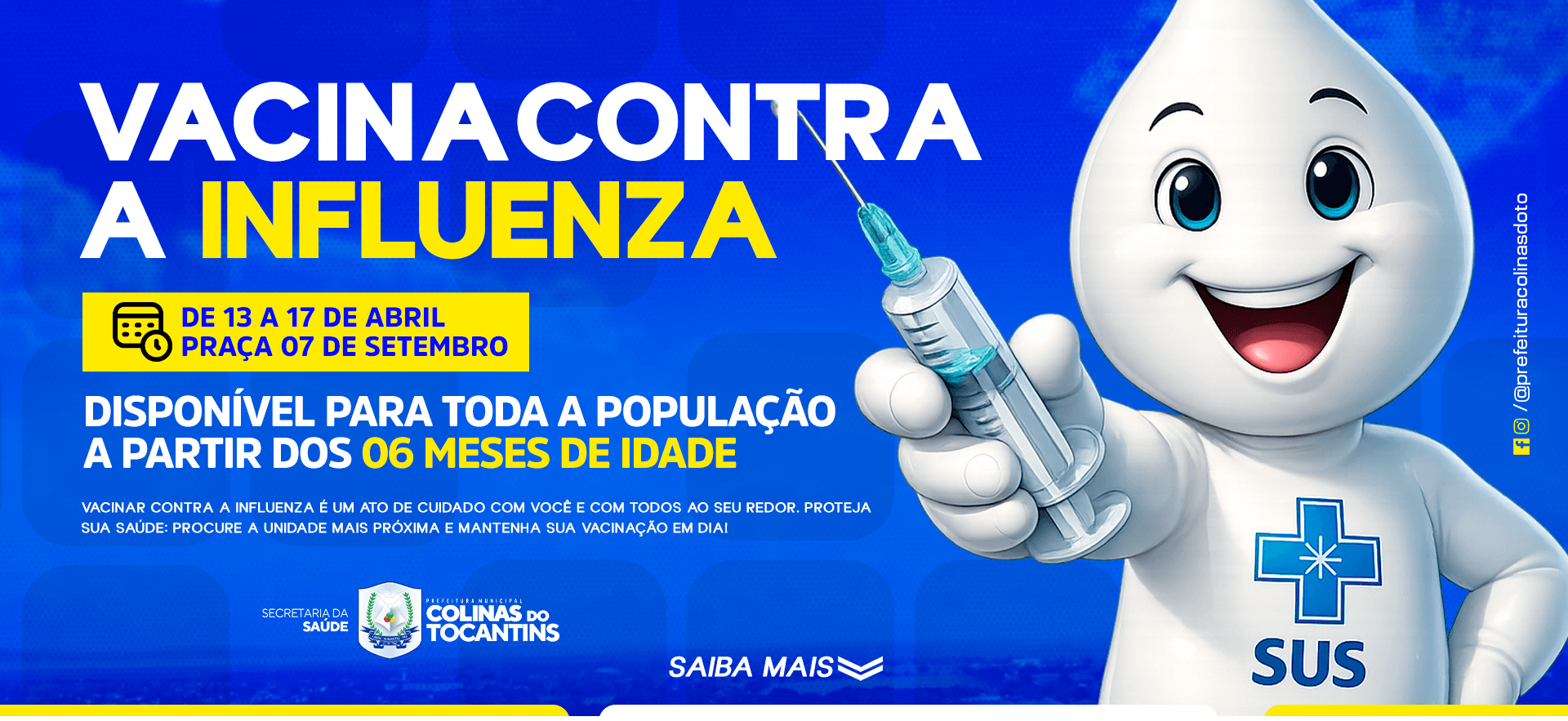 A Prefeitura de Colinas do Tocantins, por meio da Secretaria Municipal de Saúde e da Gerência de Imunização, informa à população sobre a realização de uma importante ação de vacinação contra a Influenza (gripe), fortalecendo as estratégias de prevenção e reafirmando o compromisso da gestão com a promoção da saúde pública e a qualidade de vida dos cidadãos.
